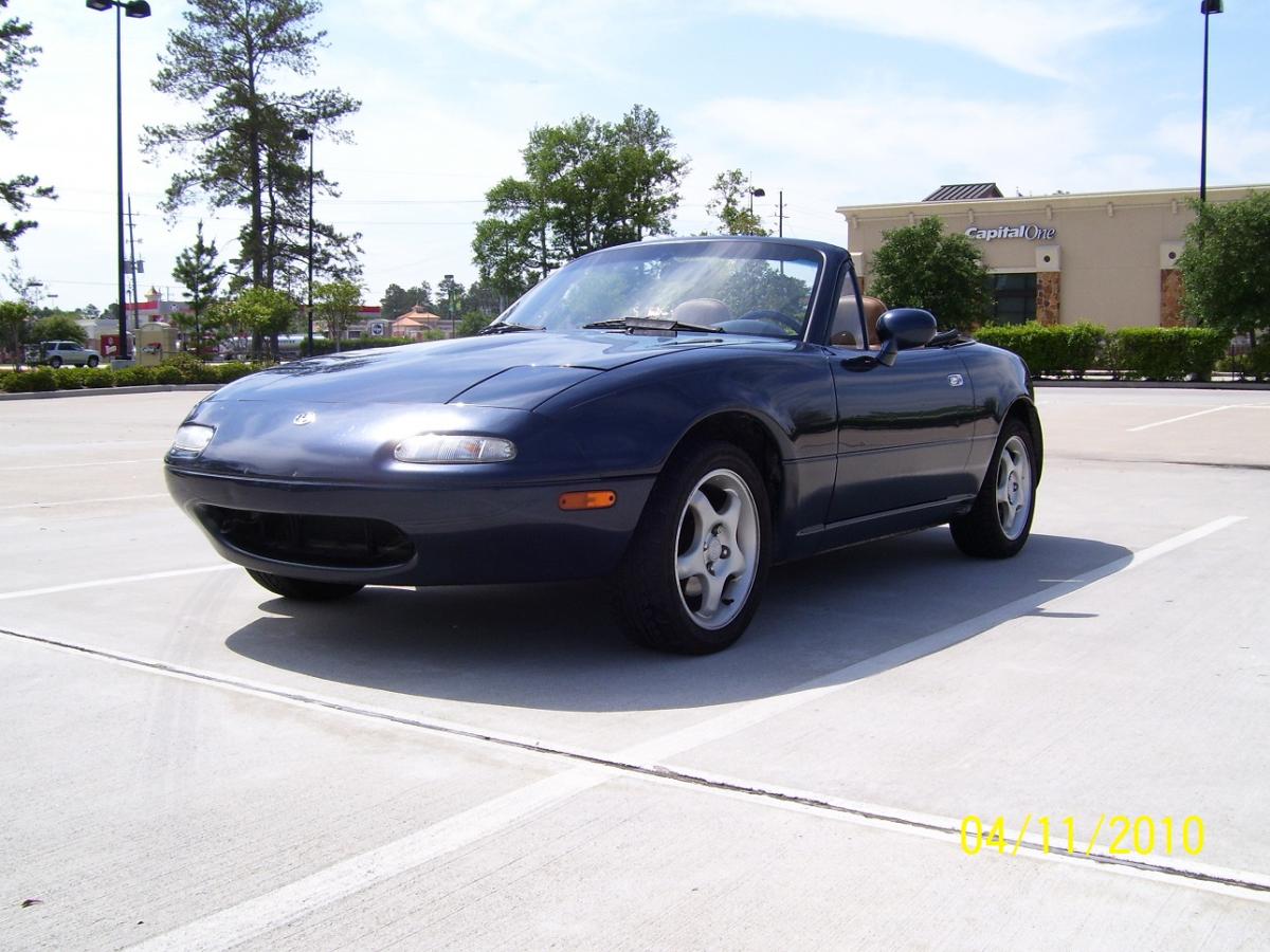 I am selling my 1997 Mazda Miata STO Edition #1189 5-spd manual. It has a clean Texas title. The car has 148,000 miles on it but the engine has around 60k-70k. The original engine ran out of oil and seized so I bought a used engine from a local engine shop that guarantees less than 60k miles on it. The car is in excellent shape mechanically. Nothing is wrong with it!!! It is the STO edition #1189 so it gets the special blue/green color (beautiful), the 15" rims, and it is fully loaded with a/c, power windows, power mirrors, leather, tape and cd player, leather steering wheel, rear spoiler, and speakers in the seats. A/C blows cold, all electrics work, no tears in the top, top doesn't leak, engine is strong, tranny shifts smooth, paint is NOT faded, and brakes are quite. When I put the new motor in a month ago I did a full tune-up with new timing belt, brand new windshield w/ molding, new transmission clutch (Exedy clutch), new 5yr battery, spark plugs, spark plug wires, new tires (high performance bfgoodrich g-force sports 195/50r15), radiator flush, new thermostat, and an oil change. So the car will be good to go for yrs before a major tune up is due again.