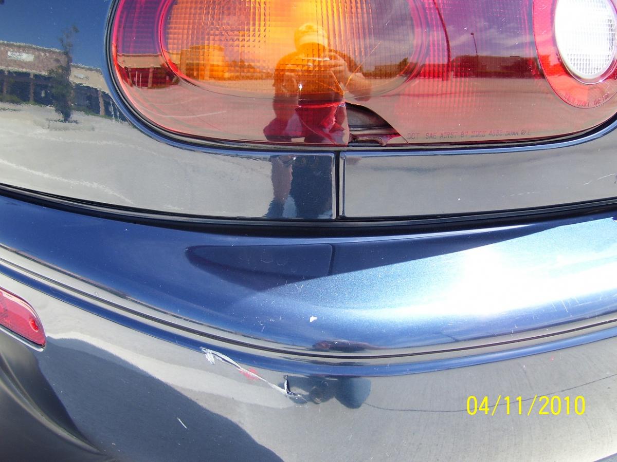 The ONLY things wrong with it are minor and they are a crack in the driver side rear taillight (nickel in size but doesn't let water in) and a scratch on the bumper right below it. (shown in picture) The soft top's window is slightly hazed (common for a 13yr old Miata), you can still see out of it but its not perfect. The driver side leather seat has creases on the front edge of them, but no tears or discolorification. The windows are slow to go up and down. They go up and down smoothly just slowly. It is just the window switch loosing efficency to send power to the motors. You can either clean the switches which helps alittle or replace it with a new one. It doesn't bother me enough to spend $50 to fix it. They work great just slowly (this is also common for miata's). There are two scratches on the front bumper however they are covered up if you run the front license plate (that is what caused the scratches). Other than these listed minor things the car is perfect and you will find no surprises when you come and drive away in a perfect top down fun car.