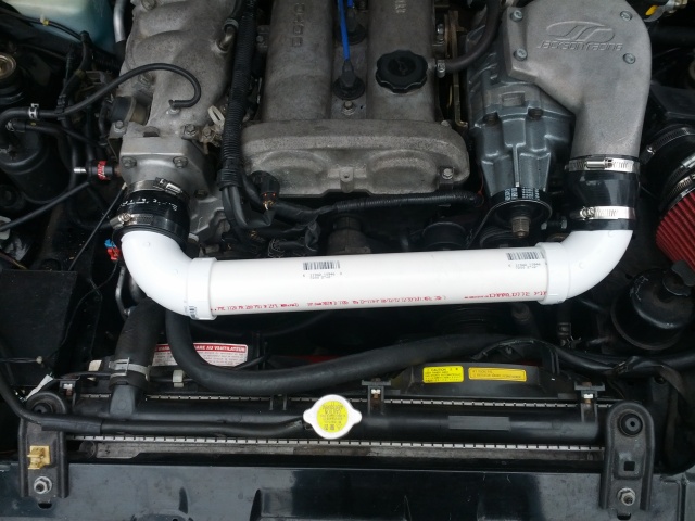 I will throw better ones up tomorrow. The first one is mid install, 2nd is arguable the worst motor shot ever. Not sure what I was thinking. As far as the uhhhrm.. custom crossover tube is concerned, I planned on intercooling very soon but it works just fine. A little high temp paint and it would look very respectable.