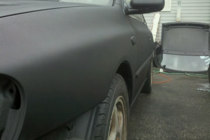 car is painted with some type of truck bed liner... i had been working on stripping it down and repainting it but finnaly got sick of doing it so i recoverd what was stripped..