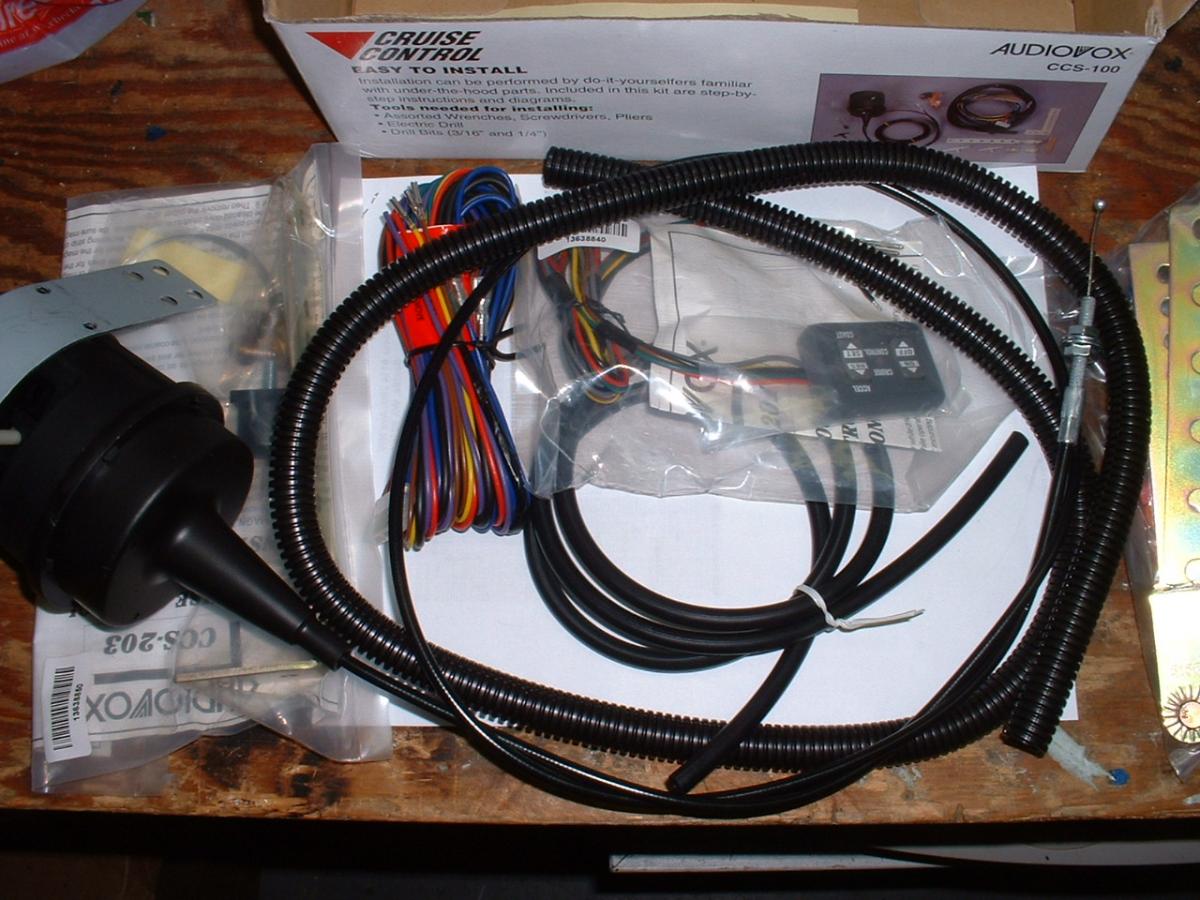 "AudioVox Cruise" is an aftermarket system. The cruise has essentially a second throttle cable, and at the end there's a ball, which you can see below. This is easily repairable, I just never have the need for cruise anymore and haven't fixed it.