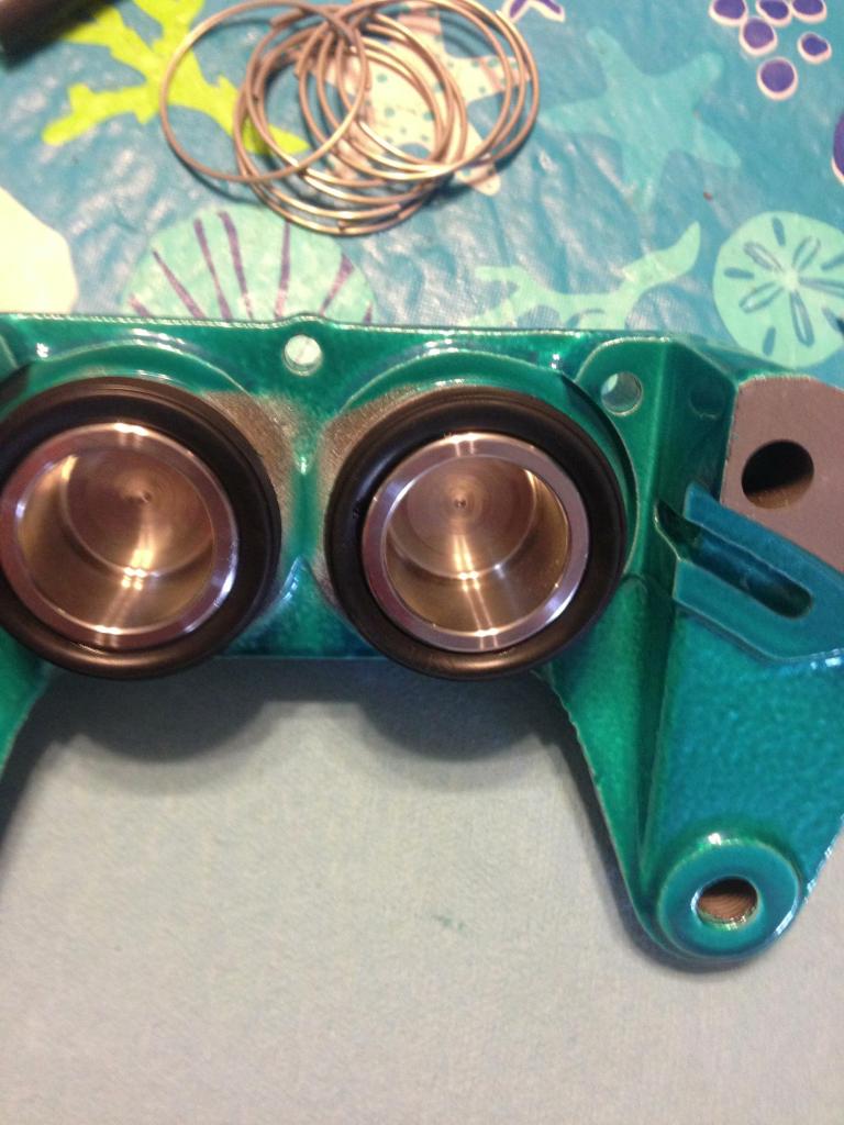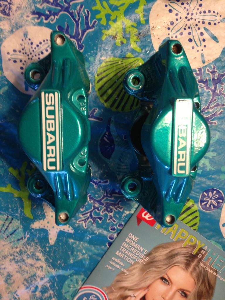 Subaru FHI 07 WRX 4pot/2pot calipers (coated turquoise, rebuilt with stainless steel pistons, and all new OEM seals)