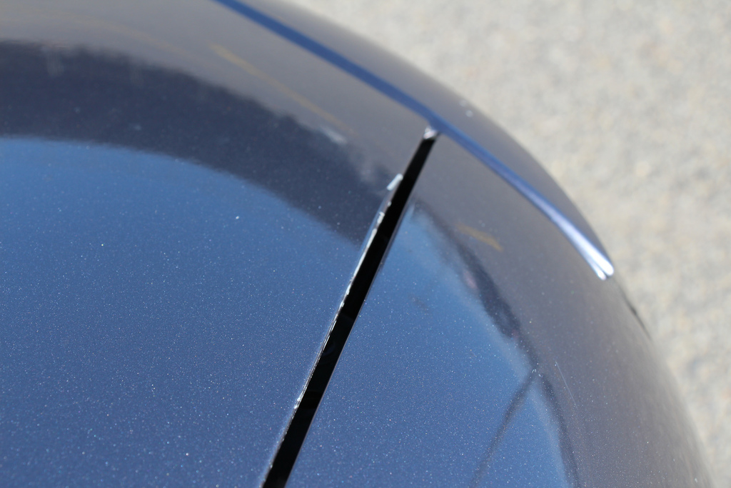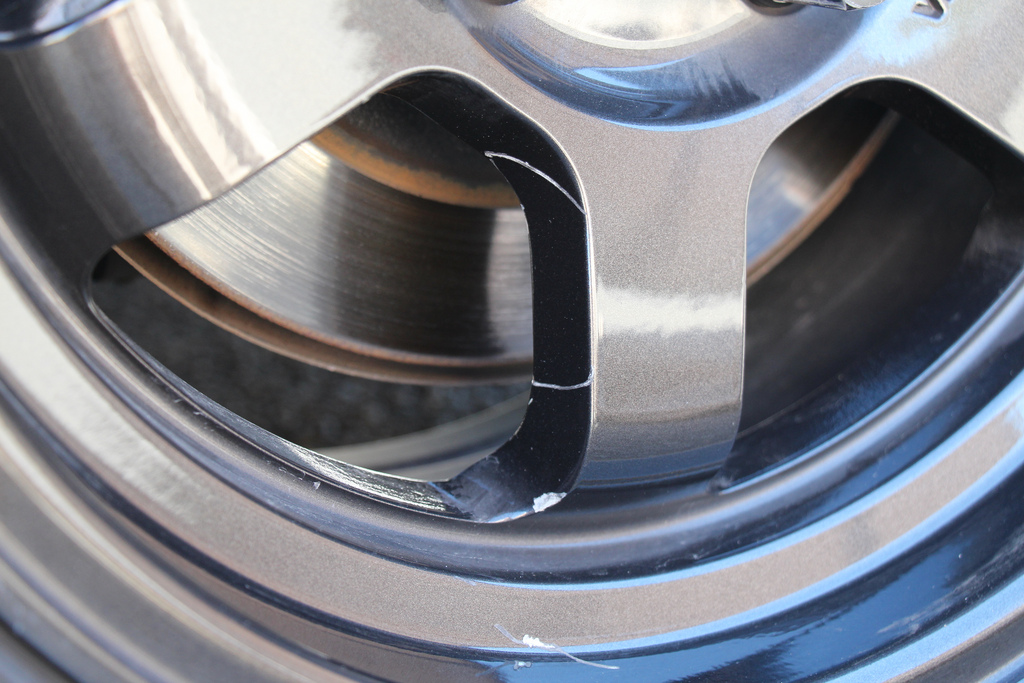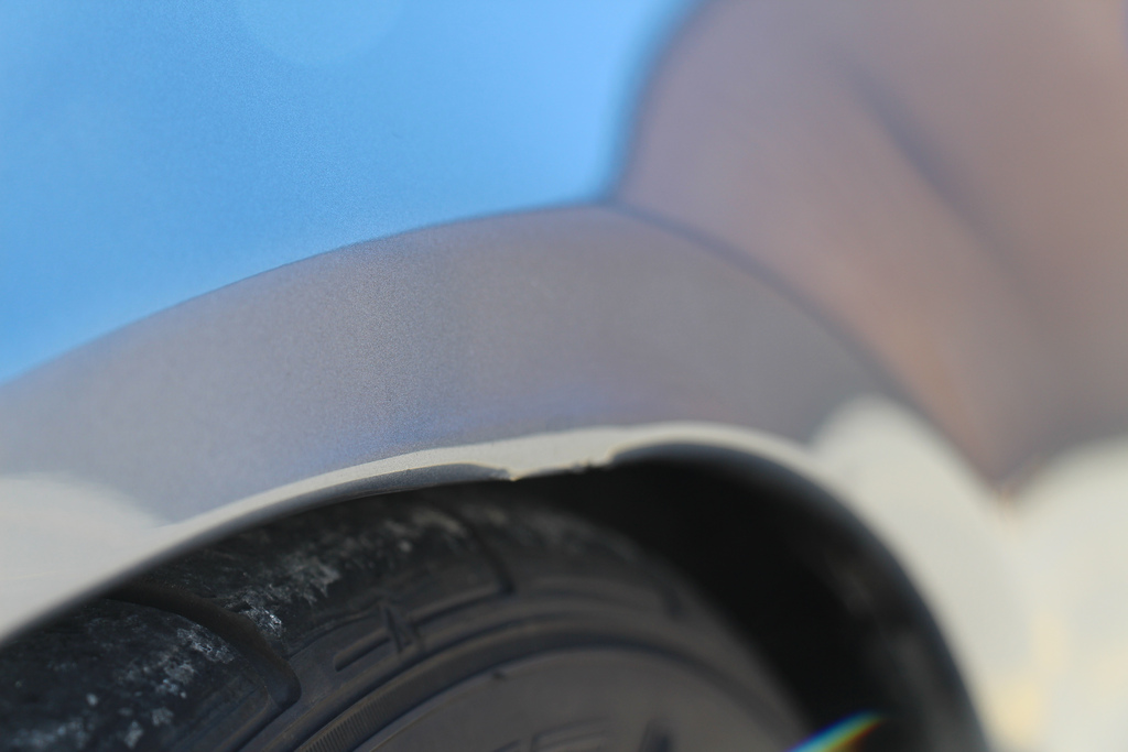 - front driver side fender (tire grabbed fender lip and bent it out. I was able to bend it back in but it is creased and paint is cracked on the crease)