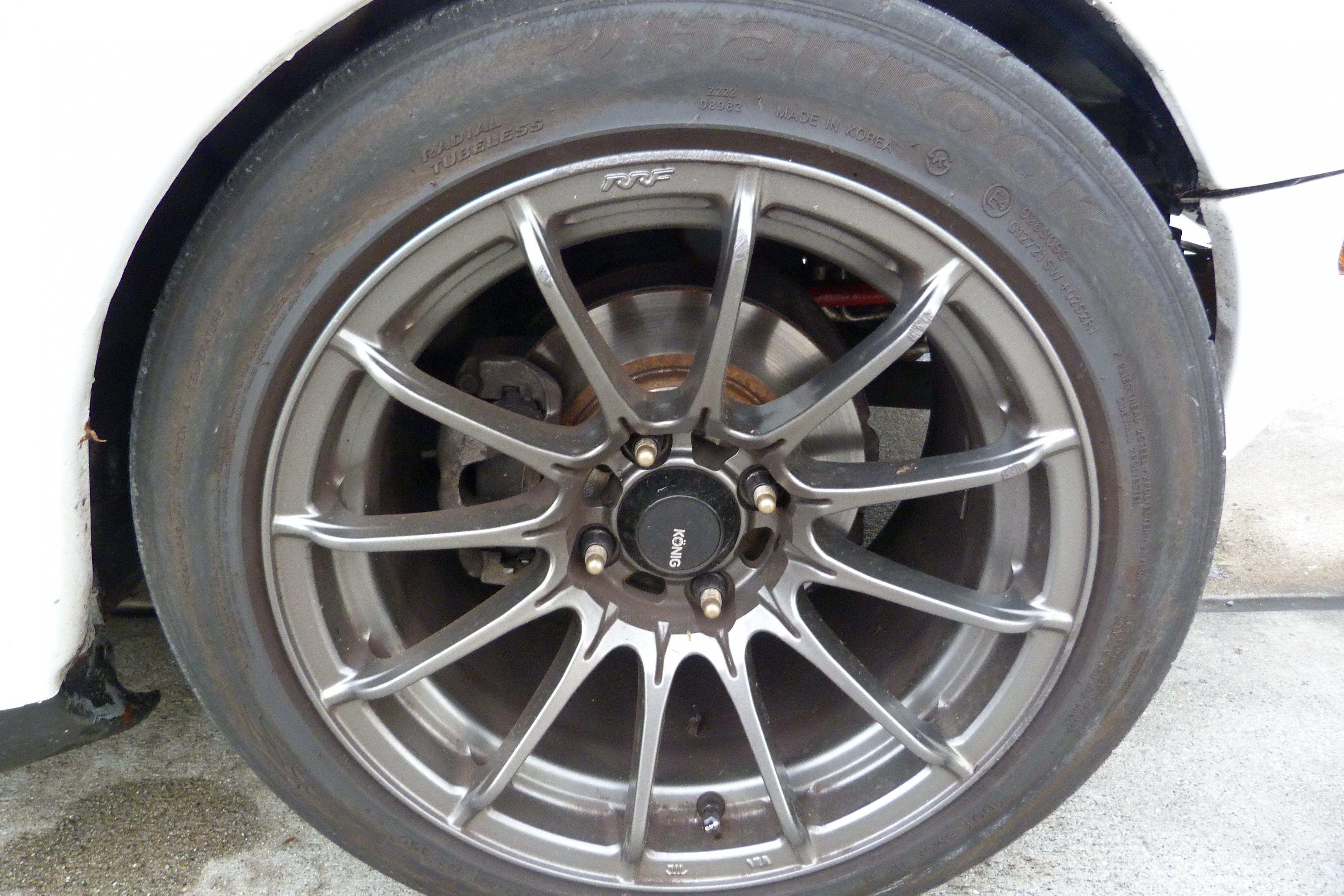 - Konig 9" (light) Dial-In wheels w/225 45 15 Hankook Ventus R-S3 tires; 15mm spacers ($1249)