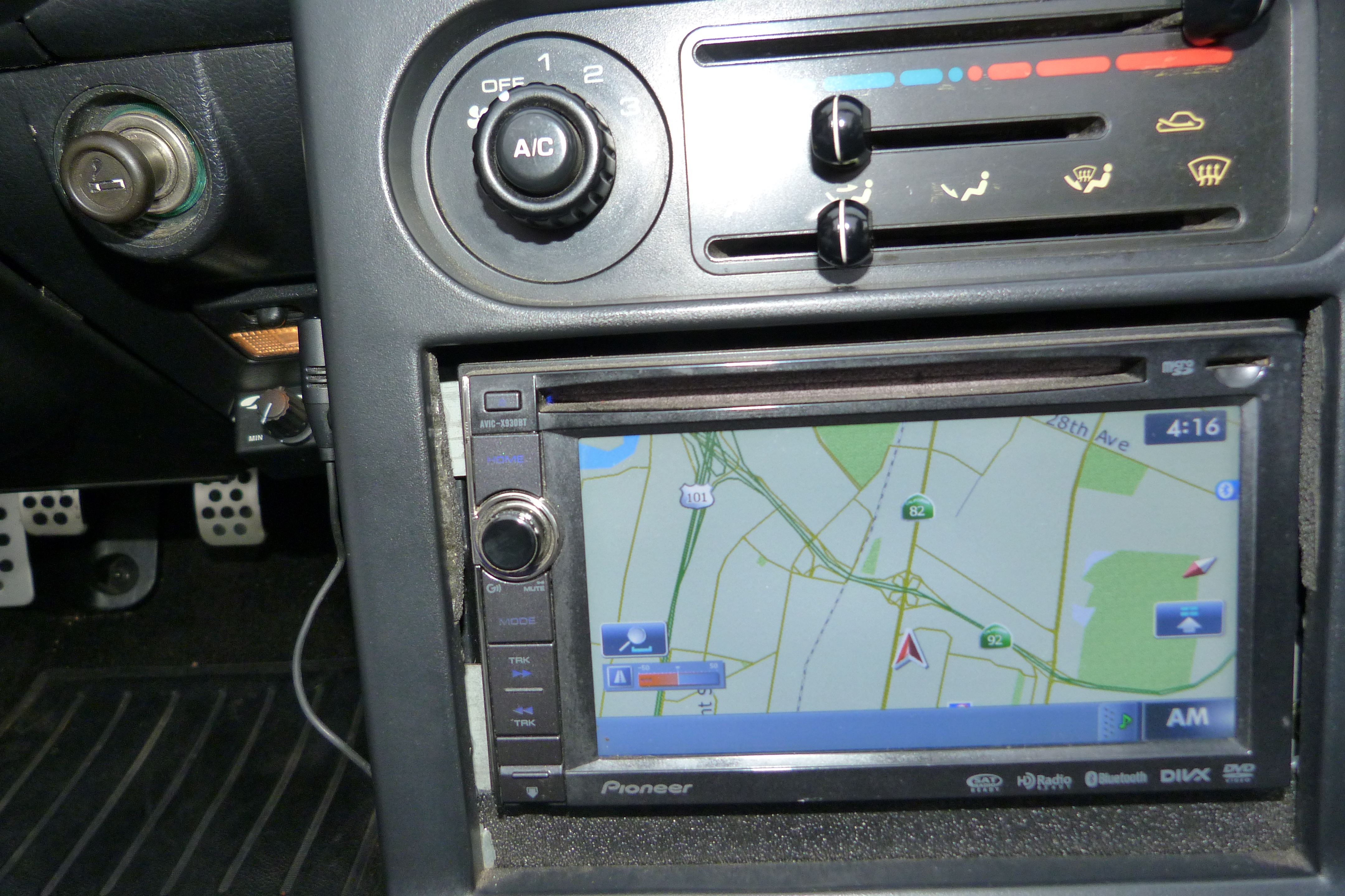 - Pioneer Avic Head unit with Navigation, bluetooth (connects to ipod), built in speaker, Ipod hookup in glovebox or play music through linked Iphone ($1000)