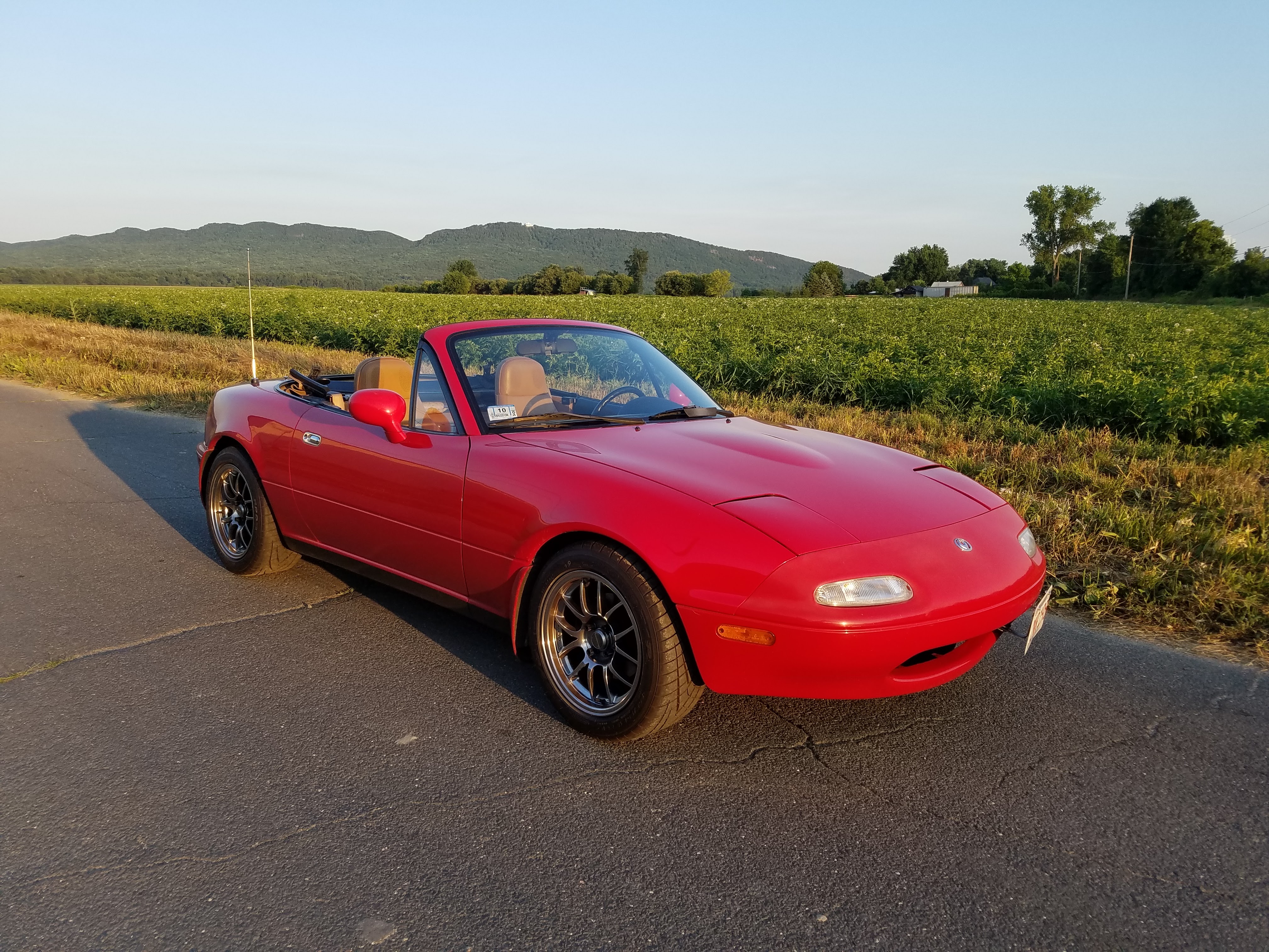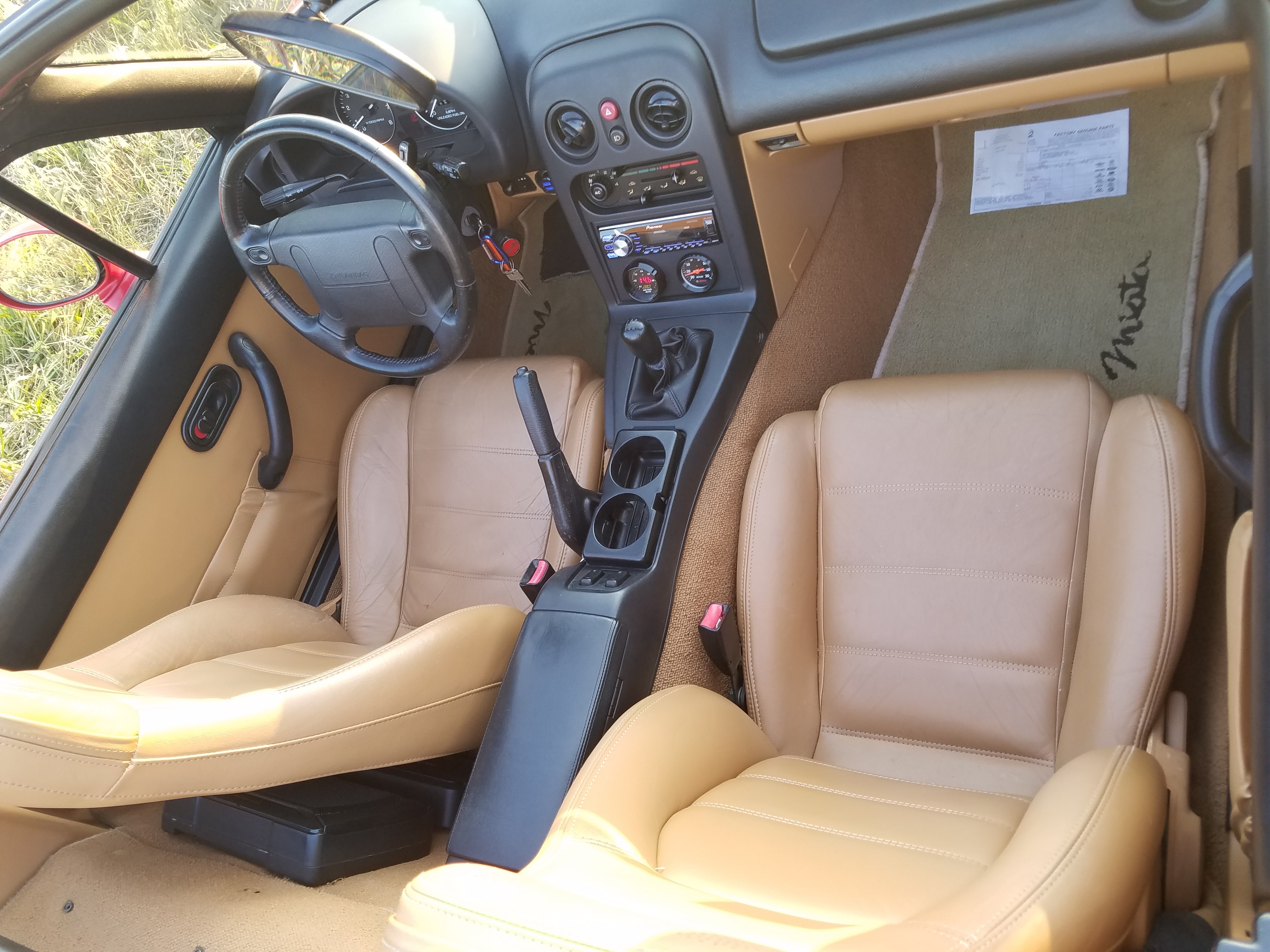 The car runs and drives brilliantly, and puts a smile on my face every time I get in it. I tuned it myself rather conservatively, so I’m sure there’s plenty of margin left on the table in the hands of a more skilled tuner. There are no oil or coolant leaks. The car runs and shifts very smoothly. I am replacing the original factory top with a black Robbins this coming week. The exterior is in very good condition. The original tan leather seats do not have any tears. Never been tracked.