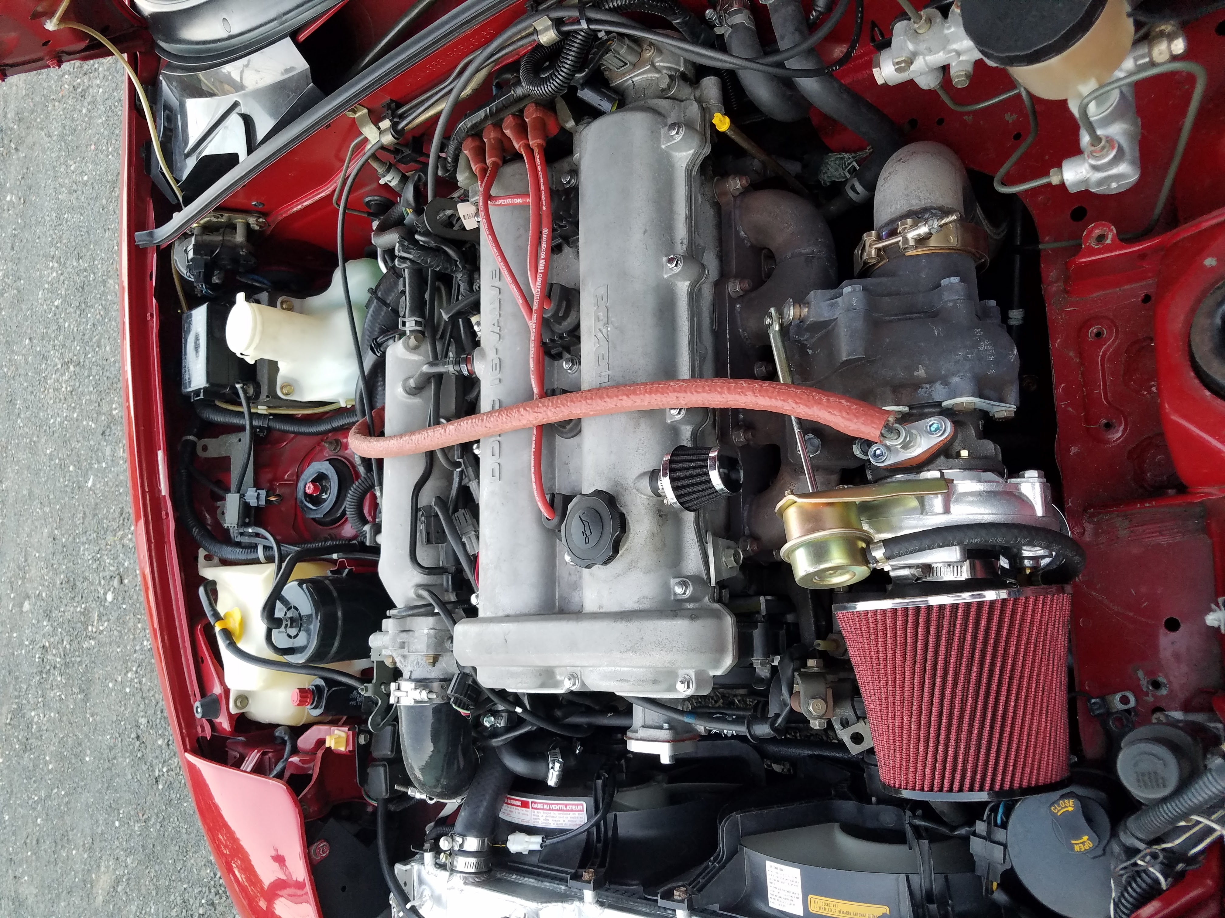 As for the oil line, I did initially route it behind the engine, but the fitting where the line meets the turbo would never match up quite right in that orientation. I tried for hours to make it work, and in the end just routing it over the valve cover allowed the fitting to thread perfectly on the turbo.