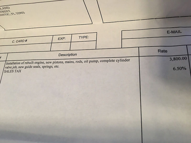 I have pictures of the receipt and the amount we paid for the entire engine to be rebuilt.