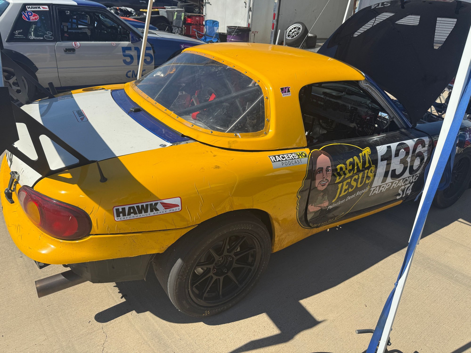 this is very much a used race car. It’s Matt Reynold’s old SM chassis. It’s been raced hard since 1999. So yes, all the bruises.