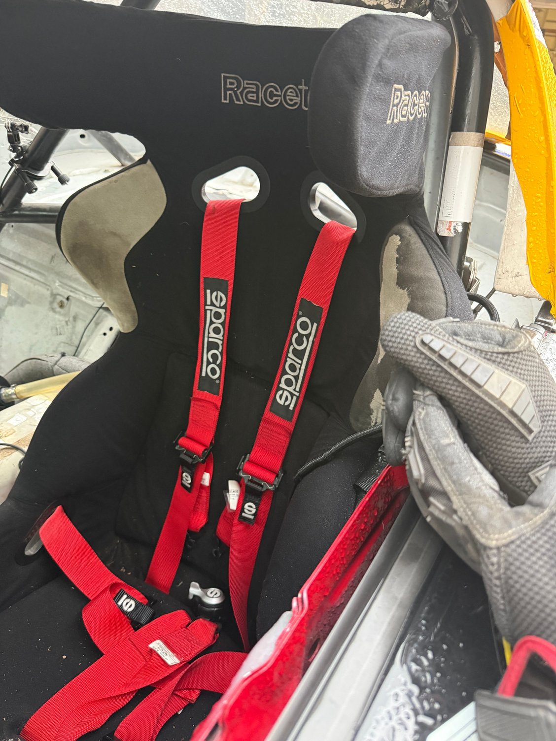 Safety - halo seat, rear brace, sparco belts, full fire system, window net, off switch, cool shirt