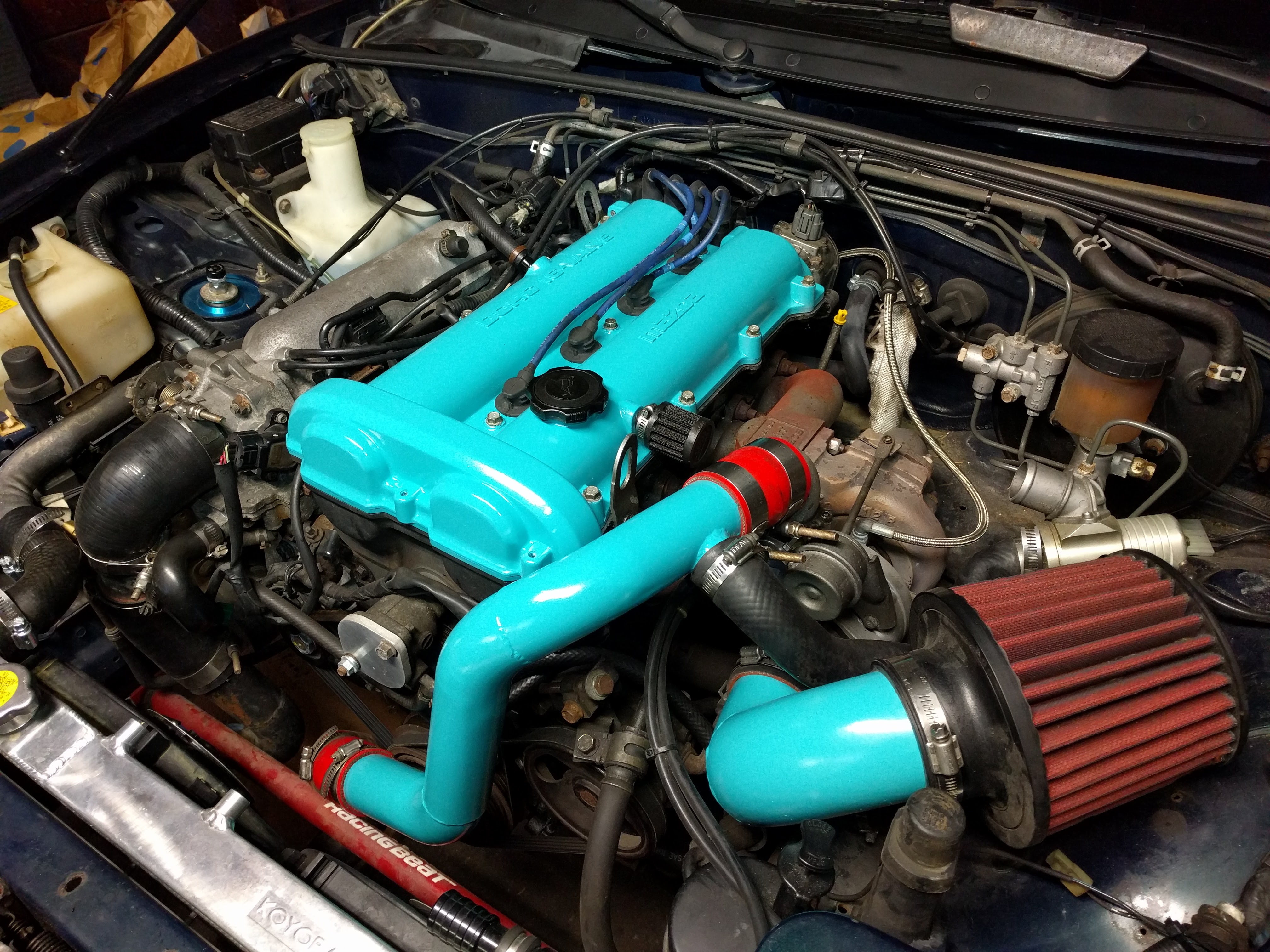 Custom downpipe and intake made by Tom at Wicked Performance Group