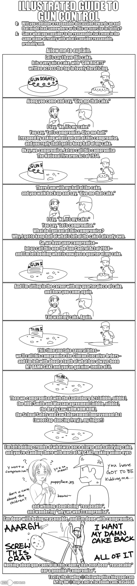 More important than any of your points (some admittedly valid) is the fearfulness that this hypothetical disarmament is nearing, and it's threat warrants the actions and attitudes I touched on earlier. Let's be honest, it's about being "Pro-Me". There's an inherent air of selfishness to this side of the debate, and selfishness in a society where cooperation is paramount does nothing positive. That's where we're at.