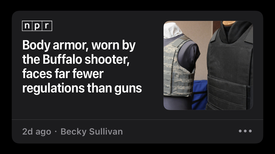 I wouldn't be surprised to see new regulations surrounding body armor. This is such a specific thing to report on.