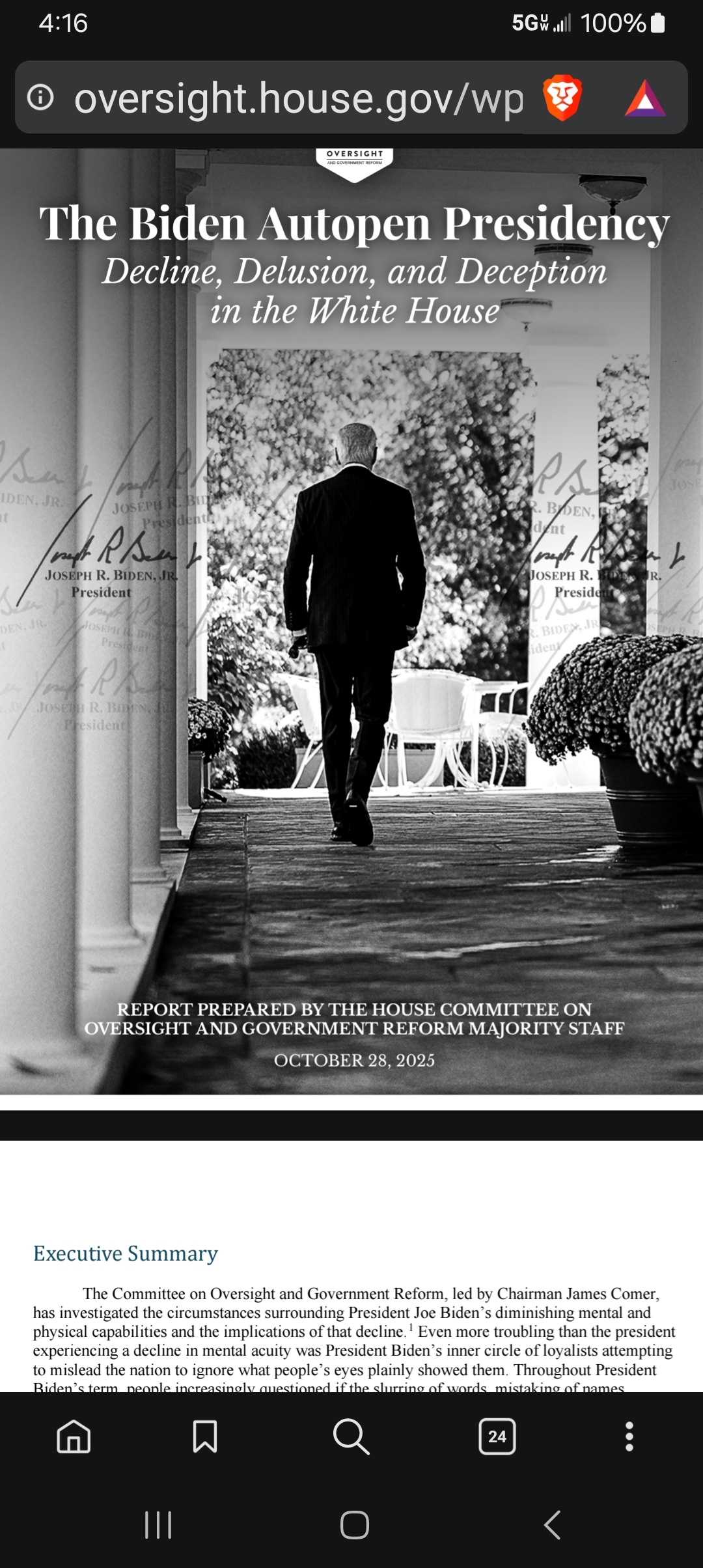 Here's the report on the House of Representatives investigation into the Biden presidency cognitive decline and subsequent use of Autopen. I will give them credit for being thorough. I wonder what's actually going to come of it?
