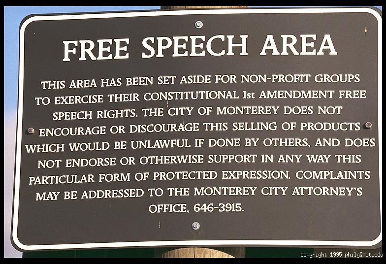 It's distressing that we already have designated Free Speech Zones in the US, not just on liberal* college campuses, but at national parks, at political conventions, in major cities, and elsewhere.