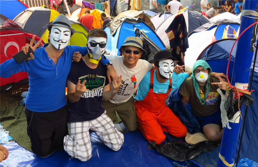 We were on the freeway, trying to march into Taksim, we got tear gassed big time.