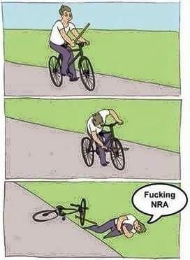 I've been looking at this one all day, and I still don't get it. What does the NRA have to do with a guy shoving a stick into the spokes of his bicycle wheel? The original version made more sense.