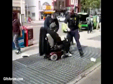cop yells at old man to get on the ground while convulsing in pain from being electrically shocked, on the ground.