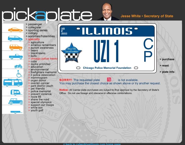 This morning I saw "UZI" driving down the road in a blacked out cadillac.