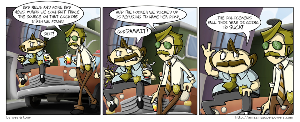 The hero warrior cop is ready to get roided up, rape, and drink and drive