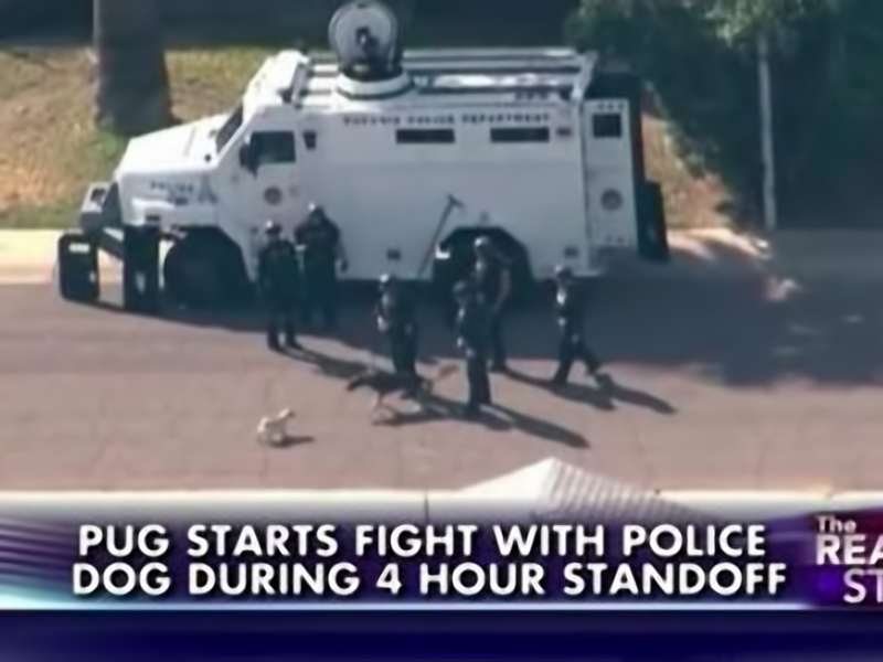 In Jocelin's commentary for the video he's heard saying: "Here we see what the police does when a dog attacks another dog.