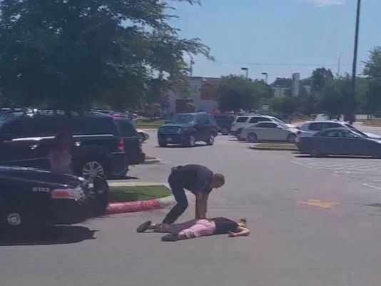 The video goes on to show Keith's 6-year-old daughter walk over to check on her mom as the officer rolls Keith onto her back and checks her pulse.