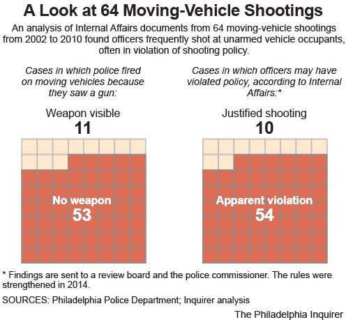 The Philadelphia Inquirer reports eight out of 10 times that police shot into vehicles, officers were found to have violated department policy with the most common disciplinary action against them being only a simple reprimand.