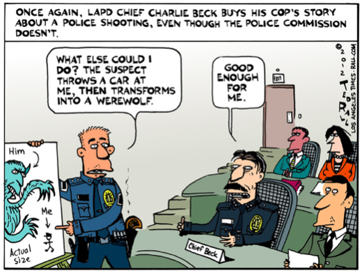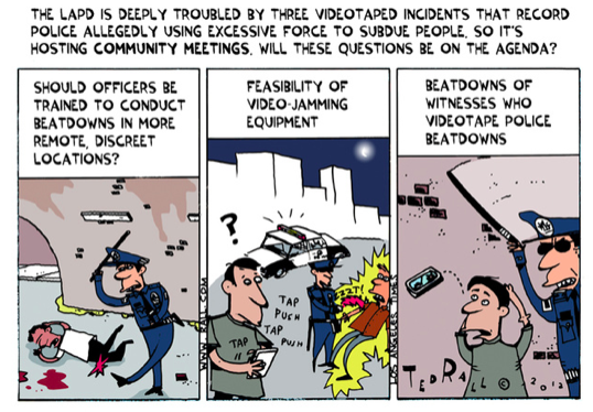 LA Times fires Ted Rall re LAPD criticismWhen I didn’t hear back, I called to check the status of my complaint. Eventually I received a letter from LAPD’s Internal Affairs division. It stated that, without interviewing me, they had found my complaint groundless.