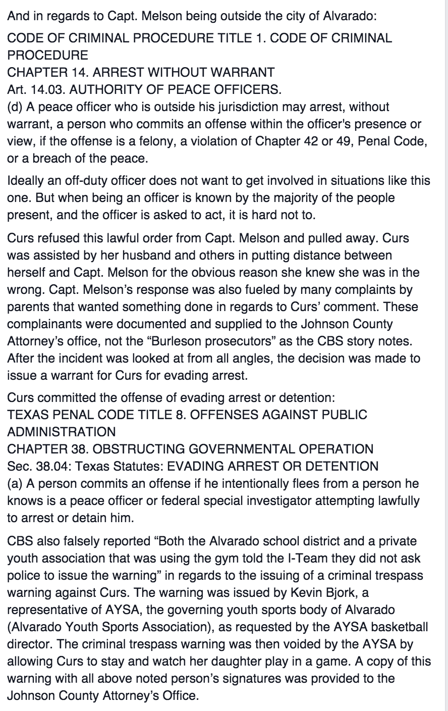 Few places exemplify the parent/child bond through sports like Texas, but now the police have stepped in and penalized a 32-year-old suburban wife and mother named Jessica Curs in a town just south of Dallas called Alvarado.