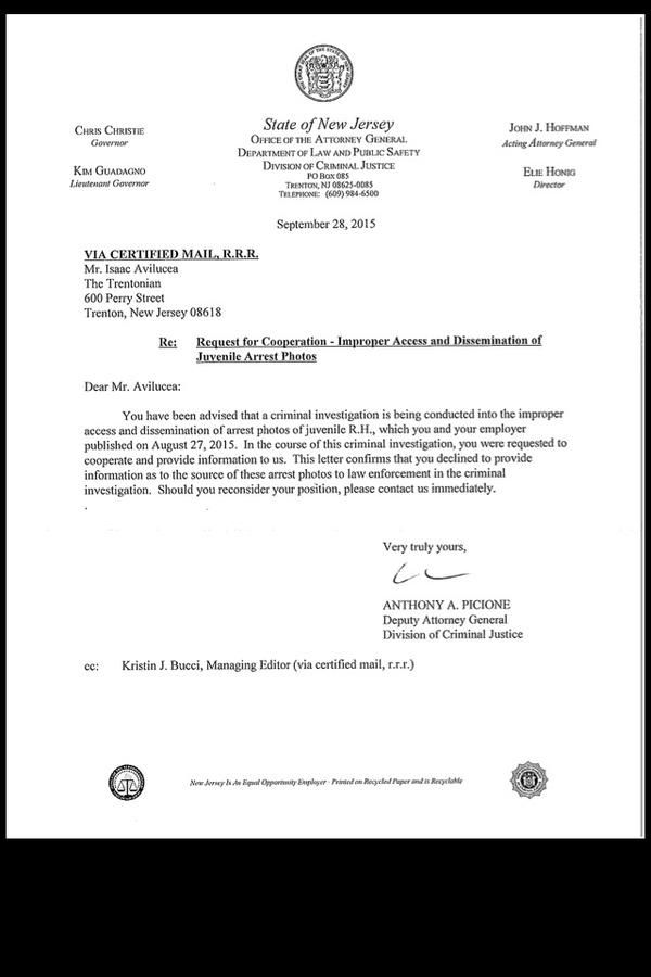 Mercer County Acting Prosecutor Angelo Onofri previously told The Trentonian he was troubled about whoever provided the police records to The Trentonian.