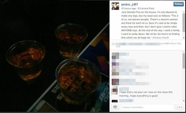 The off-duty officer who was driving the car had posted a photo on his Instagram hours earlier of three shot glasses full of alcohol. In his Instagram post, Officer Pedro Abad identifies the drinks in the photos as “Jack Daniels Fire.” He was at a strip club with a number of other police officers for several hours until they eventually left in a car together and crashed into a tractor trailer going the wrong way down a one-way street.