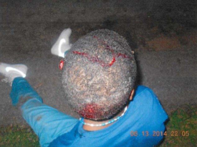 The officer then hit the boy with the bulb end of the flashlight, and pictures show blood pouring from his head and stitches on his scalp after the incident in June 2014.