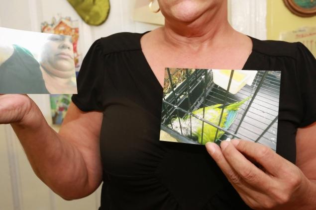 Evelyn Lugo, 57, the mother of 10 children, says in a lawsuit that cops entered her home without a warrant, beat her loved ones with batons and heartlessly killed her beloved bird, Tito. Since the violent incident, Lugo says she has been 'sick and depressed.'