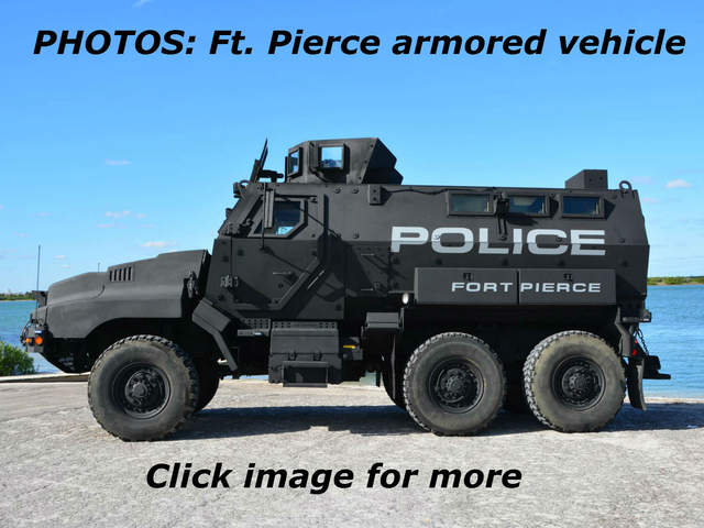 FORT PIERCE, Fla. - Police in Fort Pierce are now armed with a U.S. military surplus battle wagon: a six wheel, 30-ton armored vehicle worth $700,000 — that the agency got for $2,000.