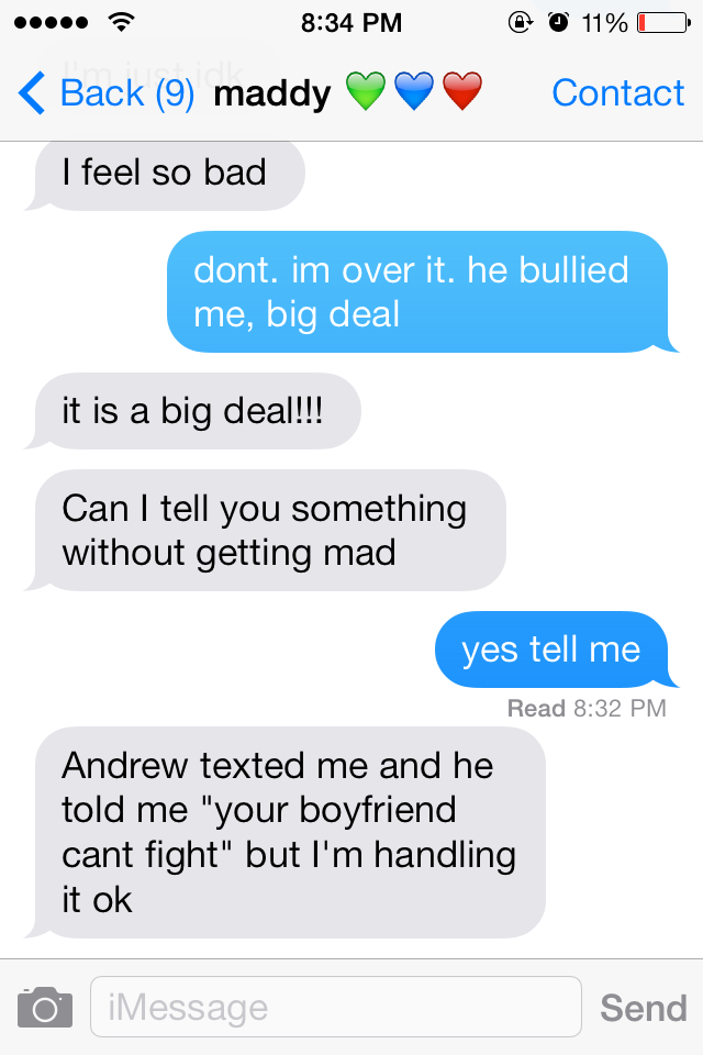 I first saw the video Thursday afternoon. I’d just arrived home, and I wanted to first hear Kobe’s full side of the event in person before contacting Ross again. He told me that he was pushed around by a guy on the wrestling team. The guy was jealous over an ex-girlfriend that had been paying attention to Kobe. It was the same person that he had previously been bullied by at Summit Middle School.