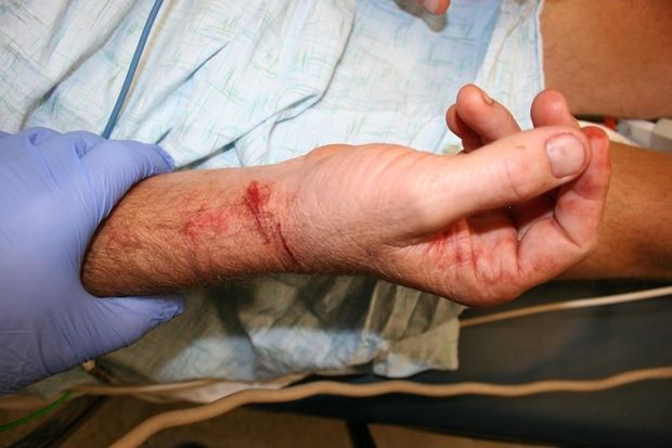 Crime scene photos of Deputy Justin Watson at Huntsville Hospital following arrest of Robert Bryant on Aug. 22, 2012. (Photo by Madison County Sheriff's Department)