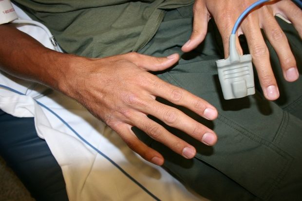 Crime scene photo of Robert Bryant at Huntsville Hospital following arrest on Aug. 22, 2012. (Photo by Madison County Sheriff's Department)