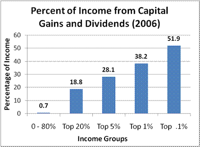 Here a chart of WHO actually claims capital gains, and I think justifies why it should be taxed on the same scale. I certainly don't get any of my income from capital gains.