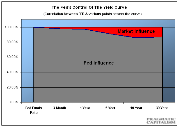 What that means is that "market forces" only have about a 12% influence on 10-year UST yields. In other words, the market will not drive bond yields significantly higher, the Federal Reserve will.