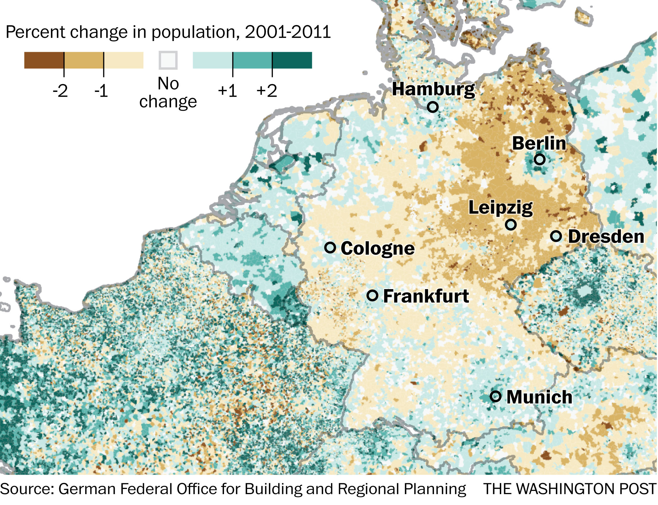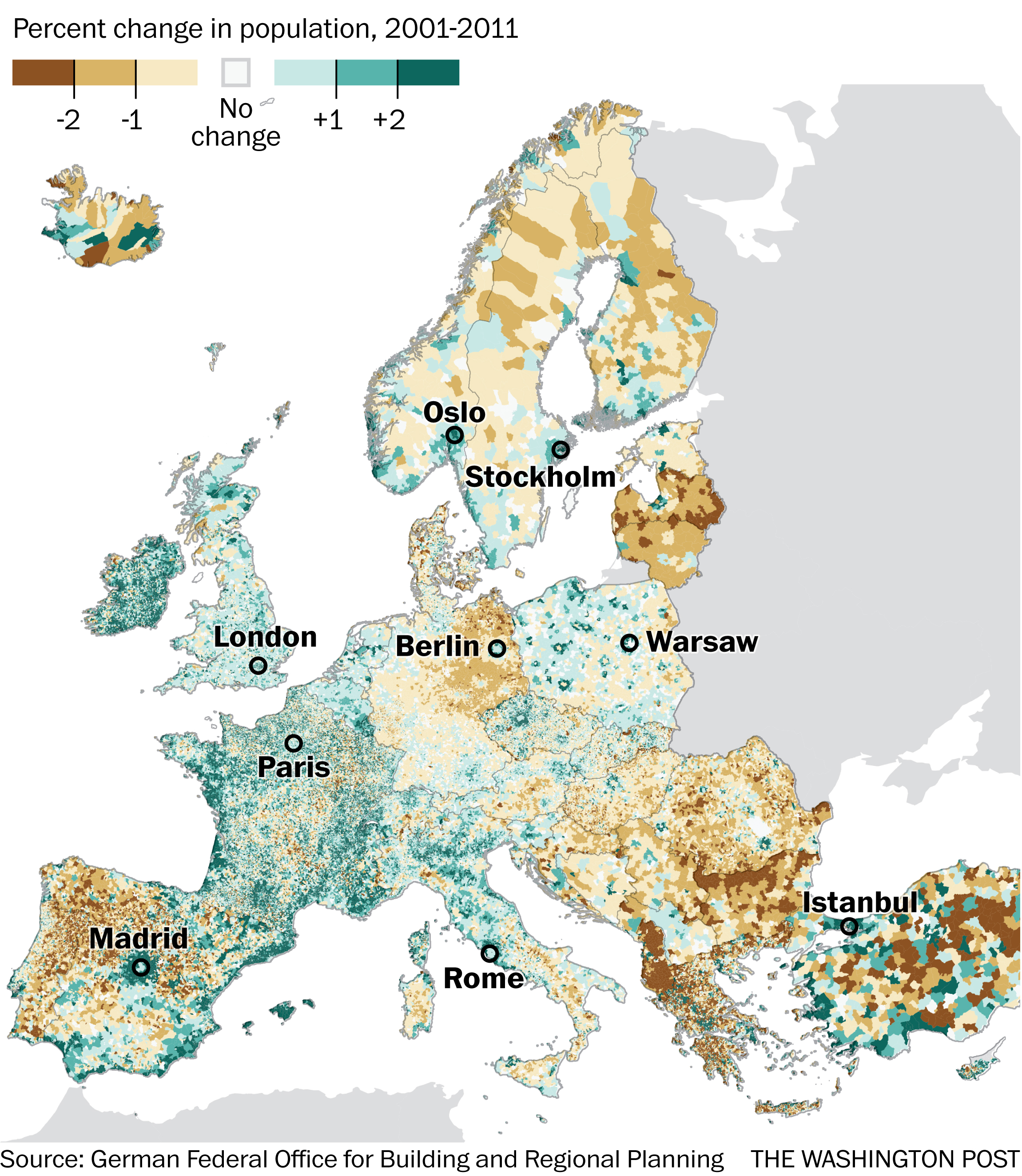 A closer look at the following maps, which compare demographic trends across Europe between 2001 and 2011, helps explain some of the reasons Europe is so divided on how to deal with refugees. The maps not only offer explanations: They also show which nations might be missing out on an opportunity for future growth.