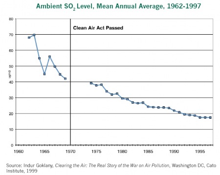 If so, these charts commit the fallacy of omission, by concealing the fact that the 1970 Clean Air Act was not the first piece of legislation enacted to decrease air pollution, nor was the formation of OSHA the first regulation put in place to ensure worker safety.