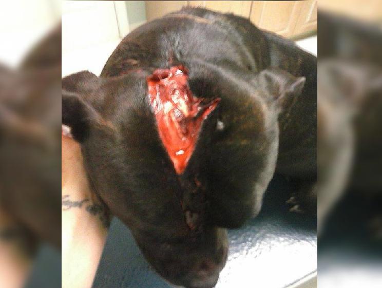 Meanwhile Lady, described as a “67-pound big baby,” was hiding under the deck, covered in blood. A bullet had traveled through the tissue on her head, neck, and shoulder. A large, open gash allowed blood to pour down her face into her eyes and nose. It was a shocking sight for the family.