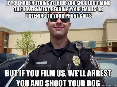 Honestly, the dog is collateral damage, but we really have to think about it...Video taping/Photographing <insert government representative/official here> should not/is not illegal.