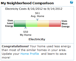 SDG&E's opinion of my total energy consumption for the Aug-Sep billing cycle as compared to my neighbors: