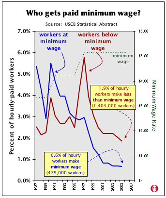 The last graph proves my point perfectly? States with higher than Federal min wage have less workers who make min wage than states that use the Federal min as standard.