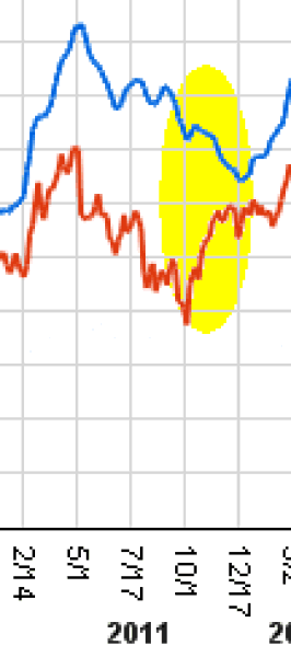 The other one is likely based entirely on Brent vs. WTI pricing. AFAIK you're using WTI pricing in your model. The period you highlighted was October 1 to December 15 of 2011. Brent was ~$26/bbl higher than WTI on October 1st, and just ~$10/bbl higher on December 15th. I am lazy, but if you use this chart: http://ycharts.com/indicators/brent_wti_spread to alter your crude data, I bet the 2011 anomaly disappears.