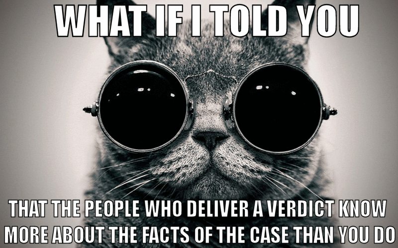 You obviously know more about this case than the six jurors that were chosen by both counsels to be unbiased and who actually heard all of the evidence presented.