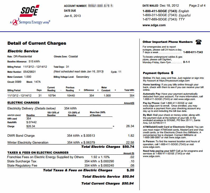 As you can see, the generation cost in Dec 2012 was $0.06379 / kWh, and in July 2013 it was $0.09192 / kWh.