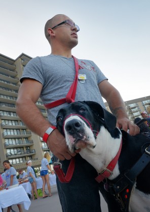 Officer Dan Waskeiwicz of the Baltimore City Police received a call one day when he was on duty stating that there was a “vicious dog” terrorizing a neighborhood and he needed to help. When he got to the scene, people were yelling at the pit bull as it ran around in a frenzy.