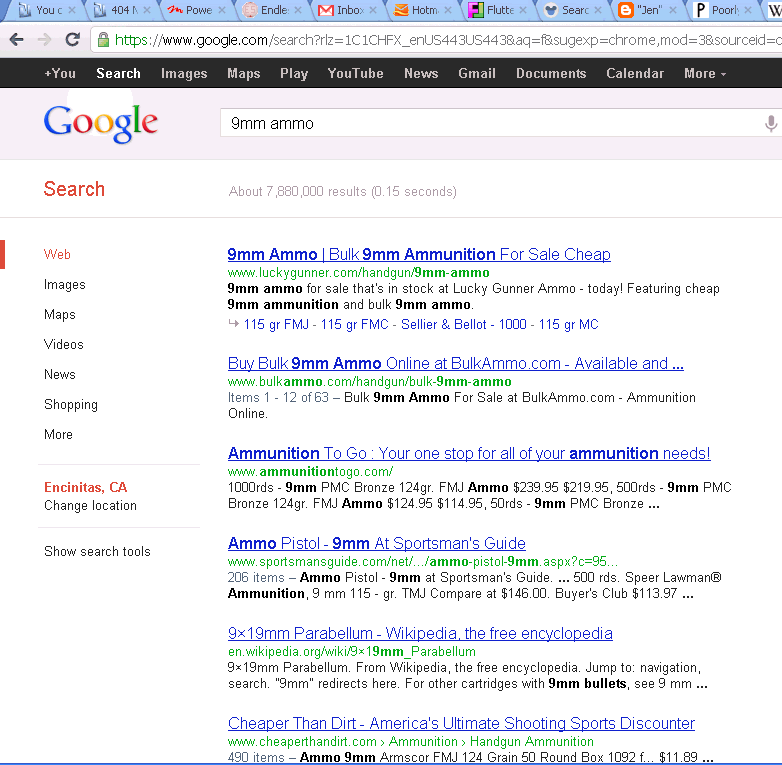 Dollars to donuts I know why this is, and dollars to donuts the more astute members of the forum will figure out really quickly why Google states legal issues and does not list guns and ammo in those states. Note that I don't claim this is an exhaustive list, or that people may get different results. But I think I see what's going on, beyond "OMGCONSPIRACYTHEORIES!"